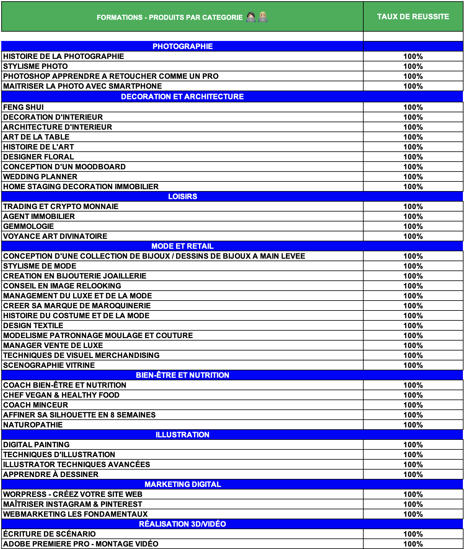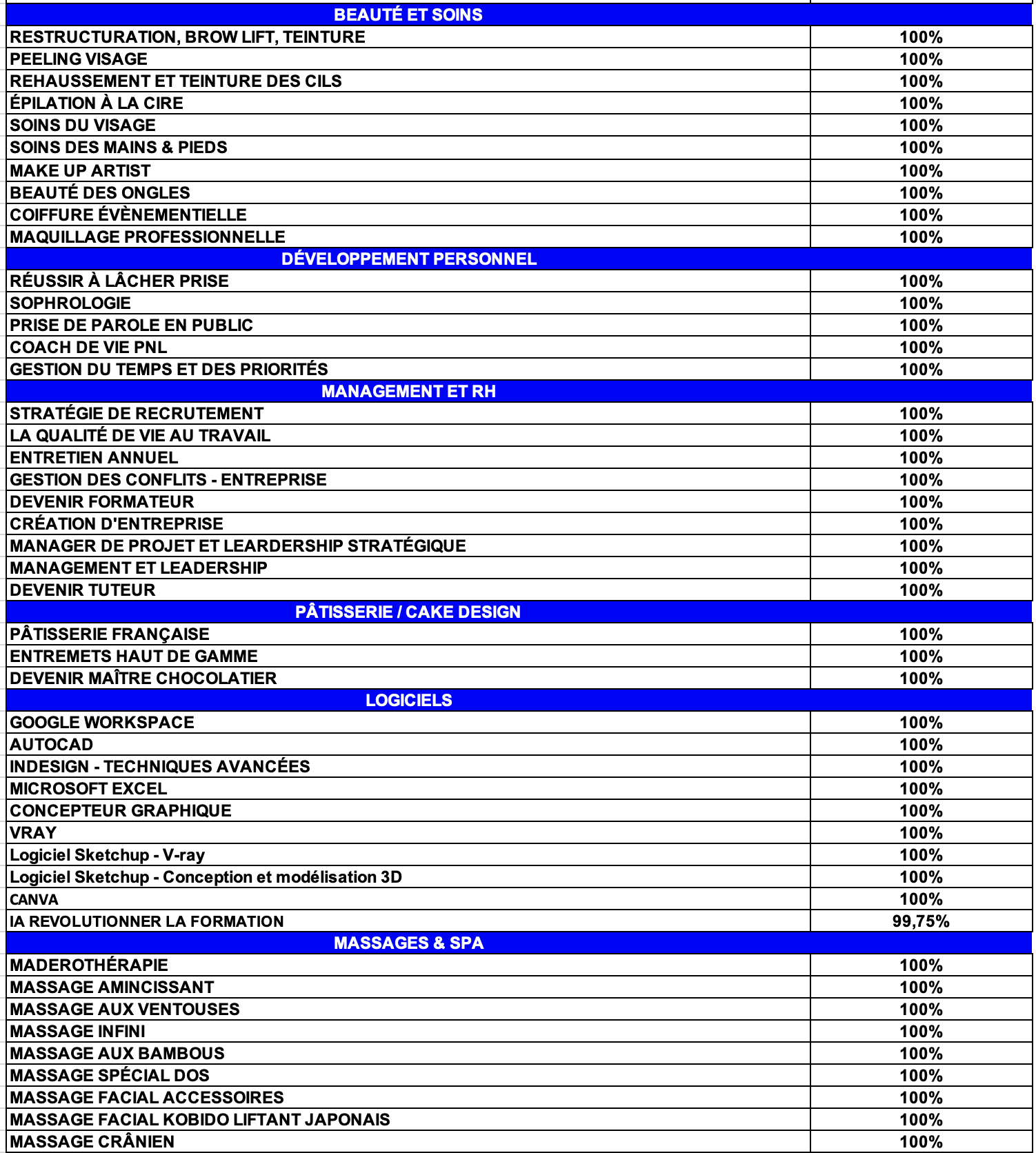 Taux de réussite global : 100%
